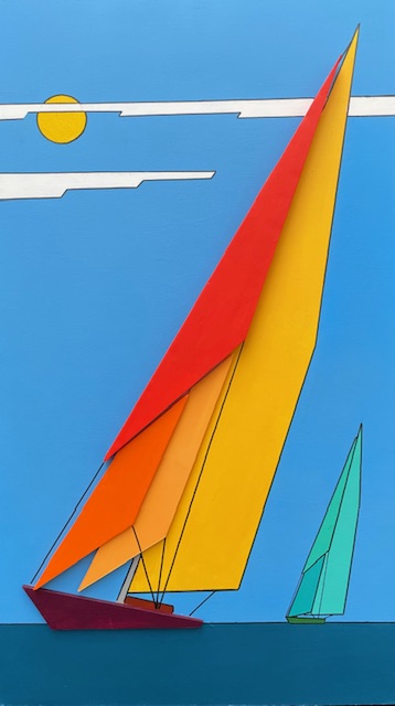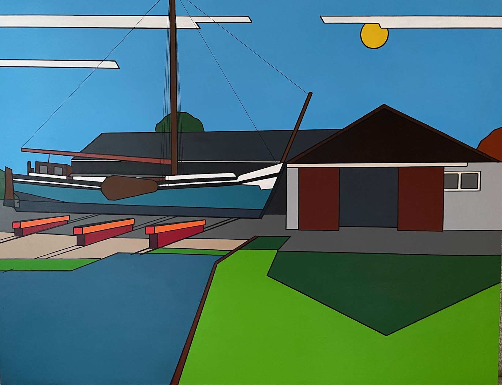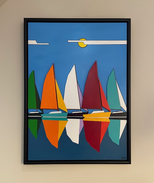 Nautische schilderijen, modern, kleurrijk en strak met een eigen lijnen spel.